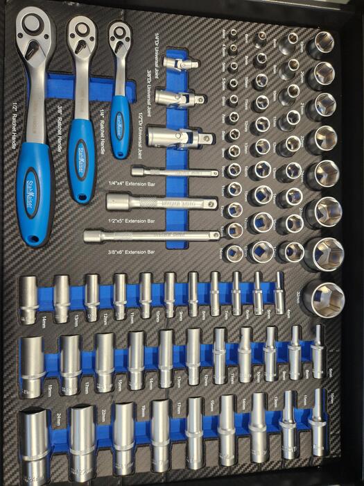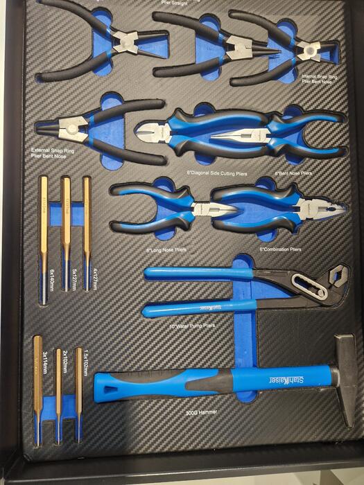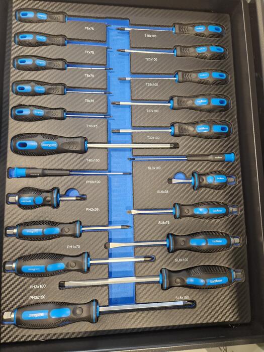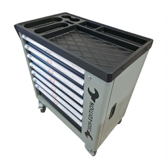 7 sahtliga tööriistakäru, 6 sahtlit komplekteeritud tööriistadega